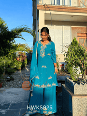 Teal Blue Hand-Work Georgette Kurta Set – Elegant Nepali-Indian Festive Wear | Sizes M-XXL